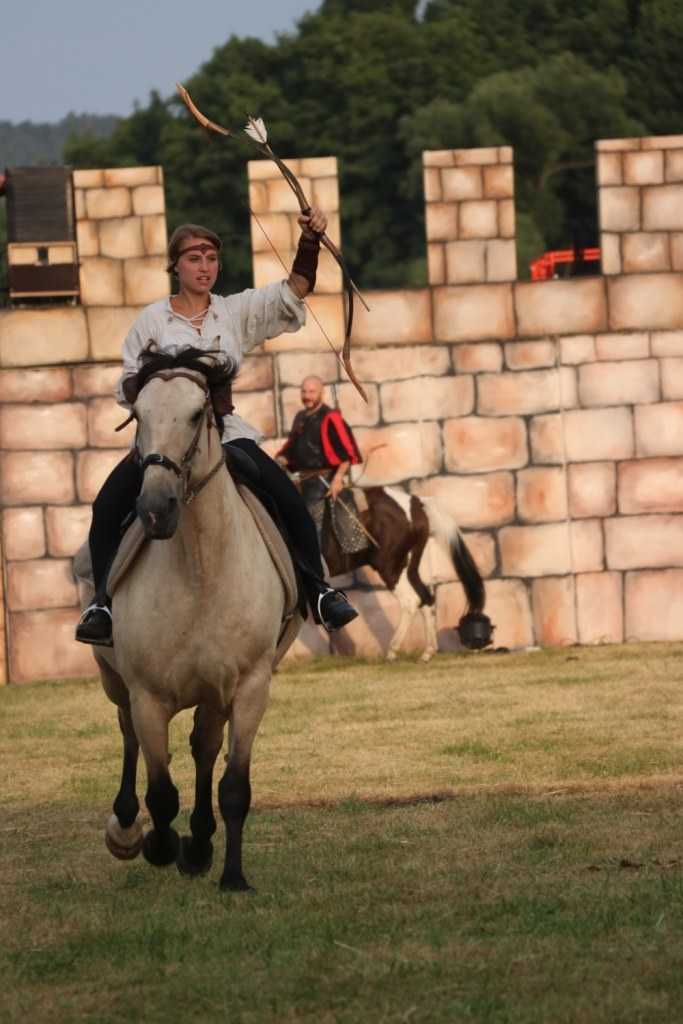 Le feu est l’une des dernières cordes que nous avons ajoutée à notre arc ! Hélène, Line et Alycia sont cracheuses de feu, ce qui nous permet de proposer des prestations différentes et plus impressionnantes de nuit. Depuis 4 ans les artefacts de feu et les flammes accompagnent donc nos spectacles. De façon toujours mise en scène et chorégraphiée. Moi je ne crache pas de feu, la voltige, la voltige cosaque et le tir à l’arc à cheval sont assez de talents !