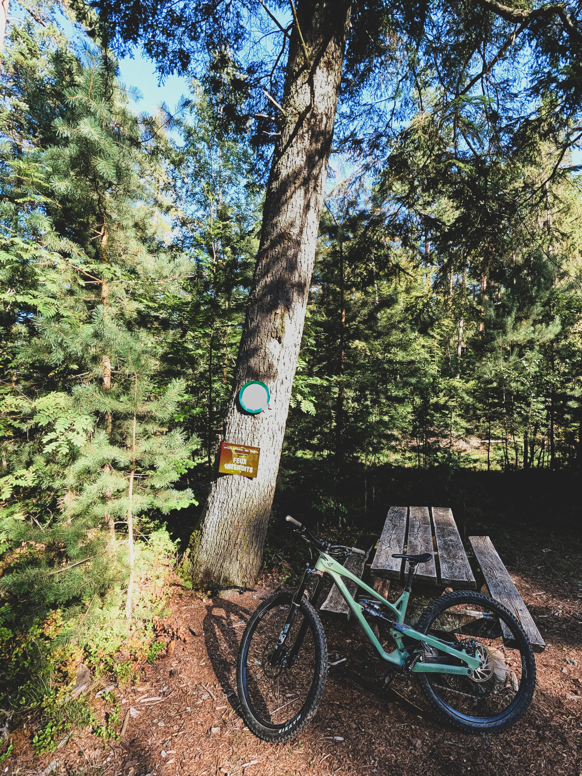 Ce chemin est agréable et offre des points de vue discrets entre les sapins. Ça descend vite à certains endroits et le chemin peut cacher de petites surprises. En fonction de votre niveau, maitrisez votre vitesse!