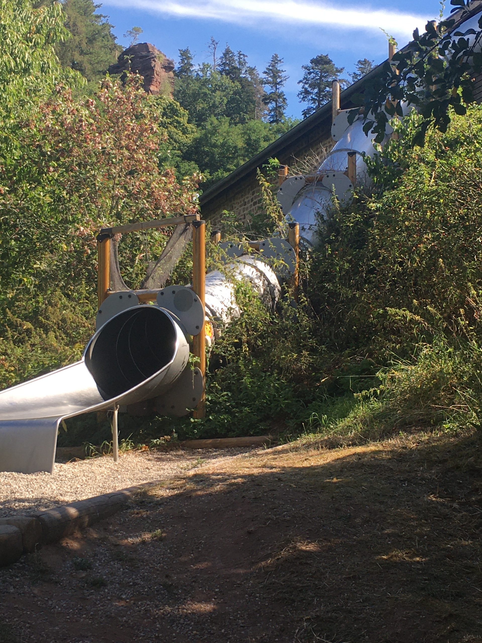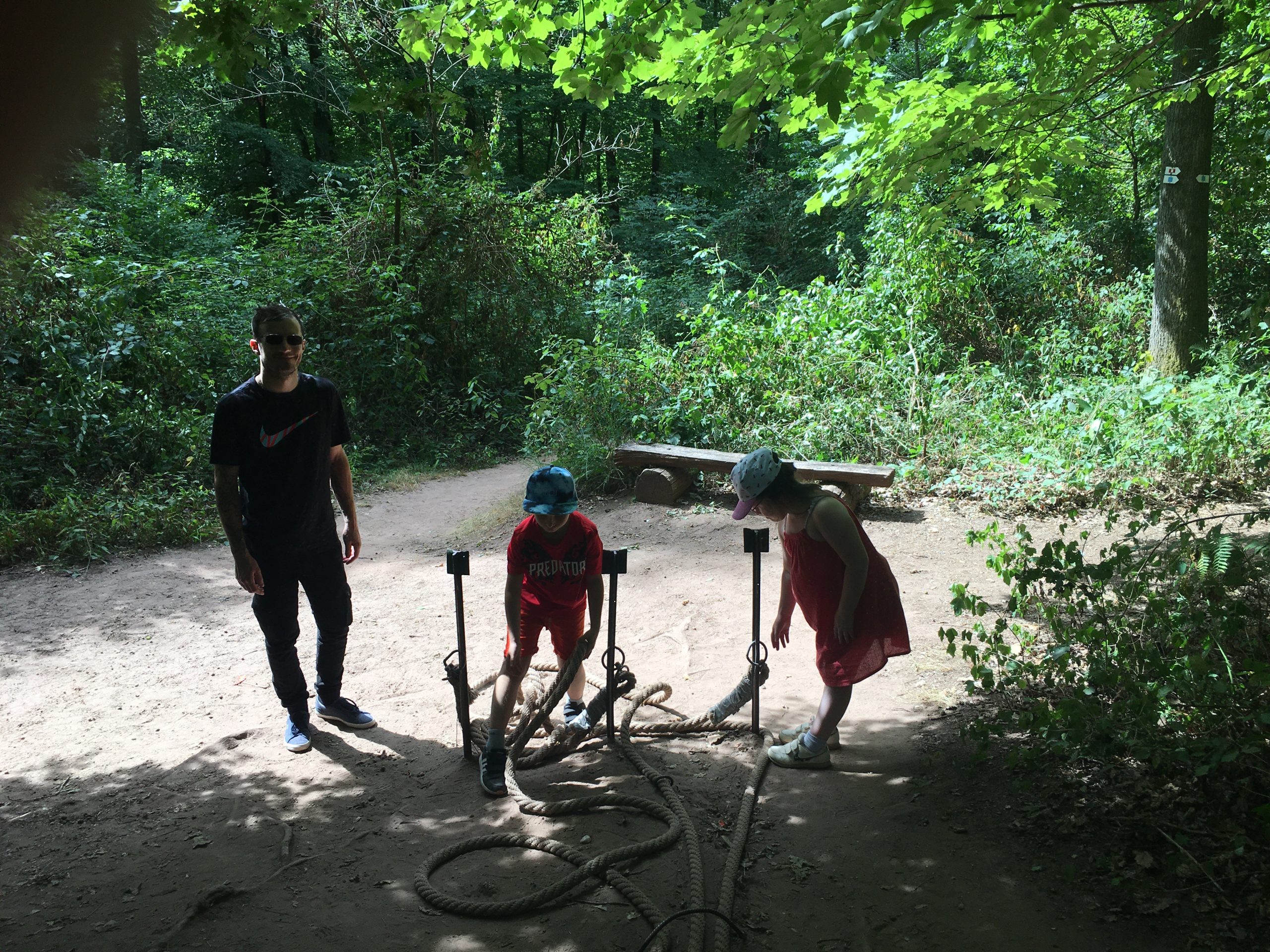 La balade en forêt est très agréable et ponctuée par des énigmes à résoudre tout le long du parcours. On ne s’ennuie pas une minute et il faut être à l’affut pour observer tous les recoins de la forêt. Les enfants apprécient énormément tous les jeux proposés tout le long du parcours : le toboggan à emprunter pour débuter l’aventure, les filets à escalader, la grosse balle à remonter dans le filet, le jeu des cordes, etc.