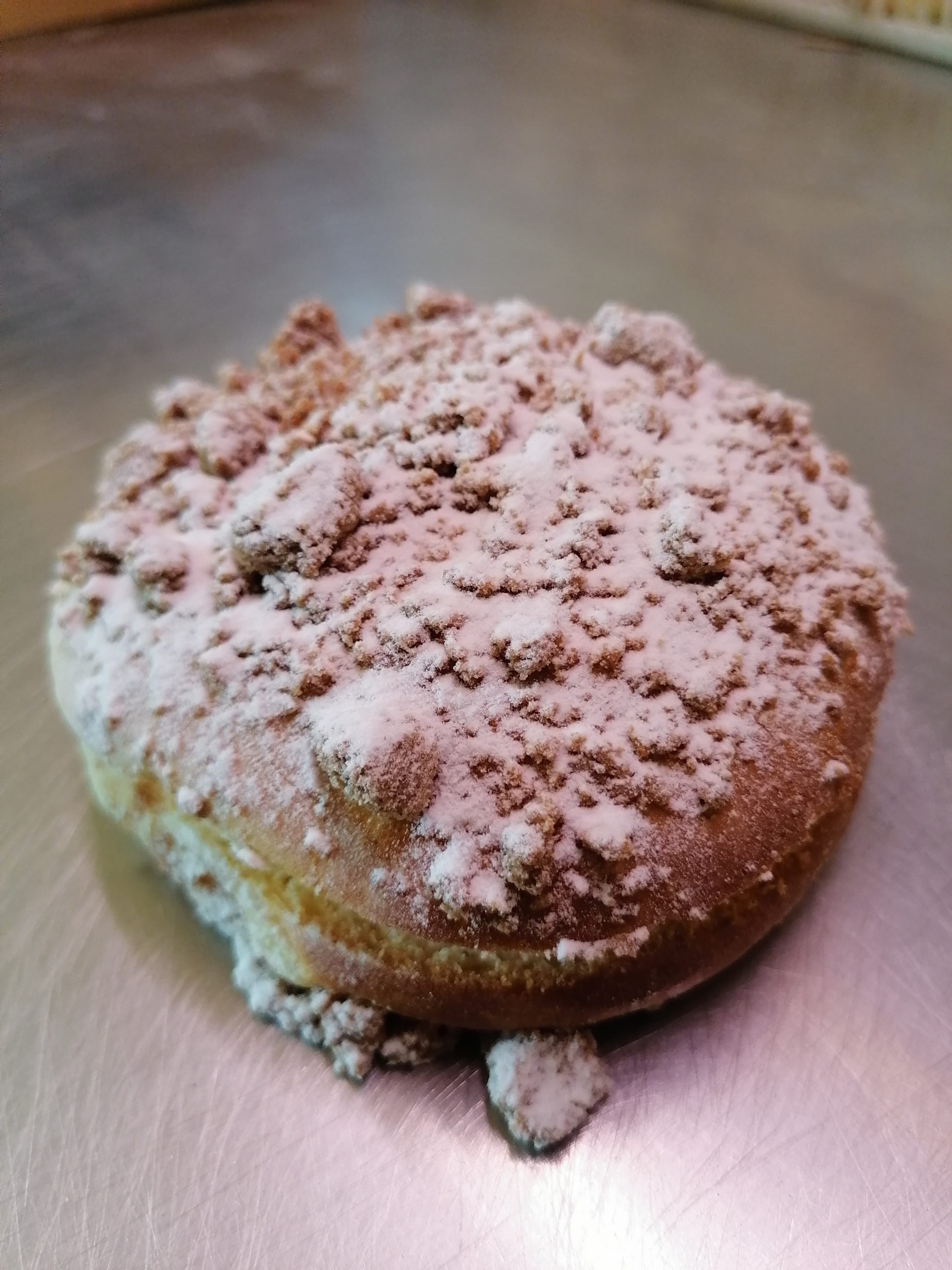 - Egrainer le streussel sur le dessus de la brioche. Couvrir avec un torchon propre et laisser monter à nouveau 1 à 2 heures.