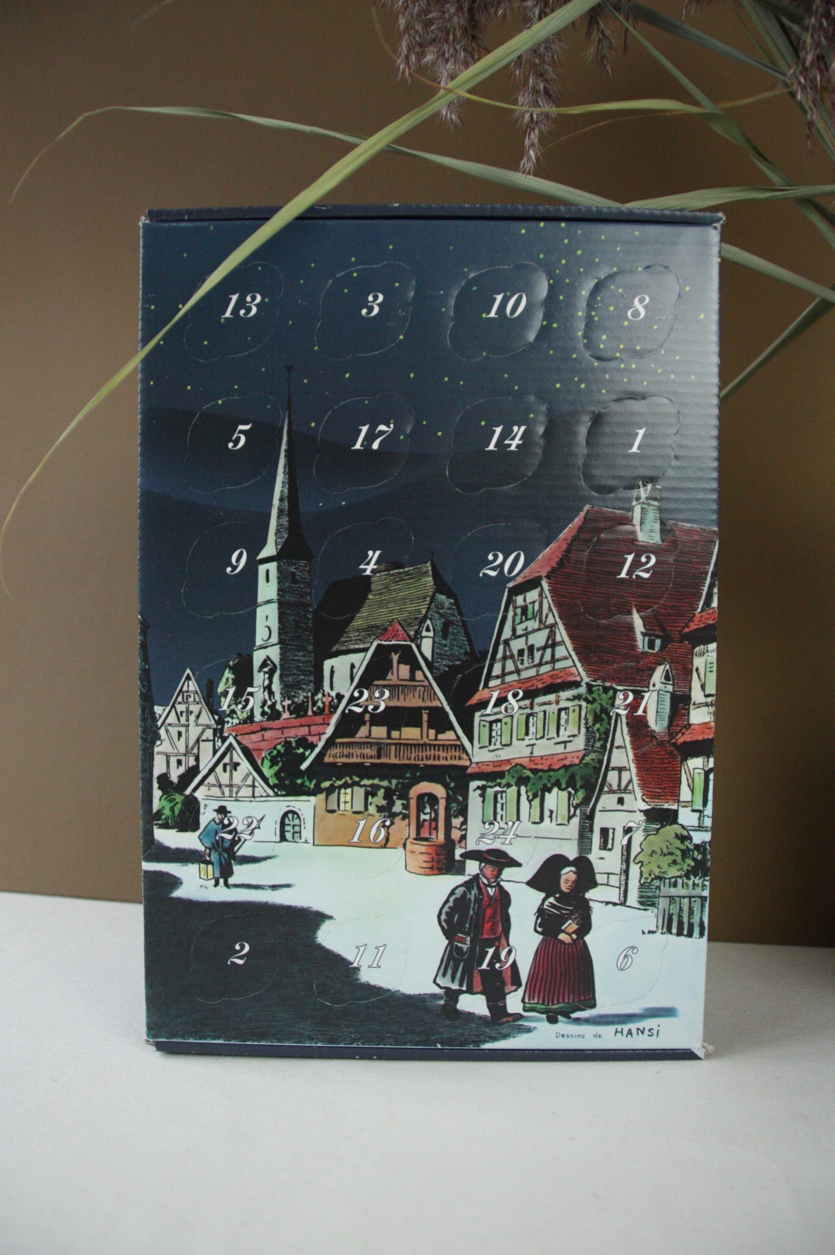 Après la Seconde Guerre mondiale, la tradition renaît grâce à Richard Sellmer. Cet imprimeur allemand publie en 1945 le célèbre calendrier intitulé La Petite Ville, qui reste encore disponible aujourd’hui. C’est en 1958 que les petits chocolats font leur apparition dans les cases, ajoutant une touche gourmande à cette belle tradition.