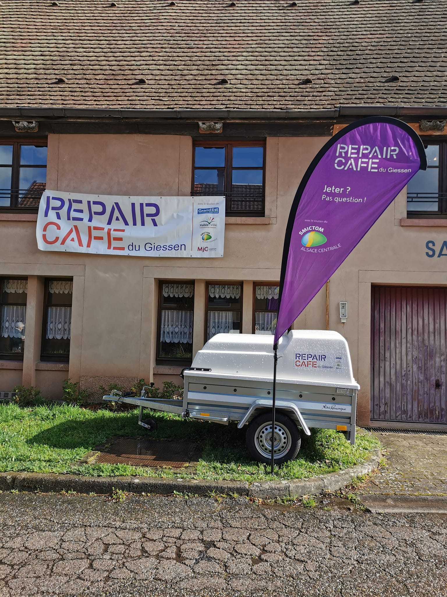 Le premier Repair Café a été organisé par Madame Martine Postma à Amsterdam le 18 octobre 2009. Le succès de cet événement a conduit à la création de la fondation Repair Café en 2011. Cette année marque le 15ème anniversaire du mouvement. La fondation des Repair Cafés a ainsi demandé au Repair Café du Giesen de créer un fanion en forme de triangle pour représenter tous les Repair Cafés du monde.