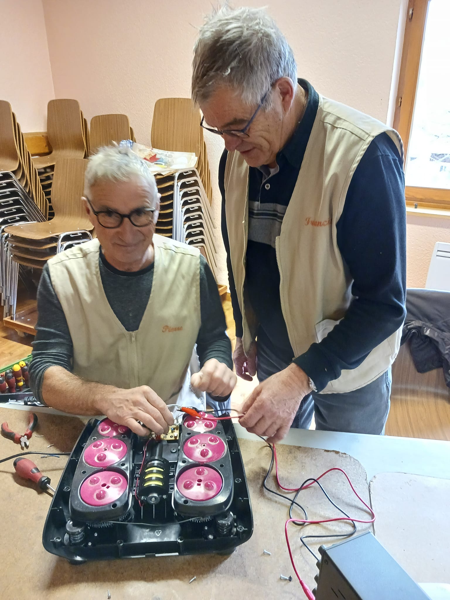 L’association se veut avant tout conviviale ou chacun apporte ses compétences en bricolage et bien plus encore ! Des bénévoles accueillent les visiteurs le matin à l’ouverture et encadrent des binômes sur les tables de réparation l’après-midi pour offrir leur aide. Nathalie anime également les réseaux sociaux, présentant chaque mois un des bénévoles.