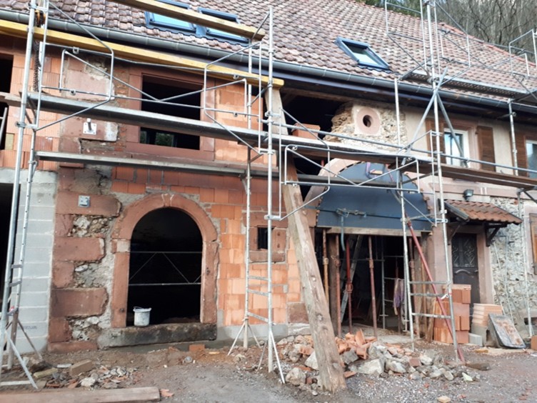 Enfin plus récemment, après la reprise de l’entreprise par Clément, le chantier de la reconstruction et rénovation lourde d’une maison suite à incendie a été une aventure marquante. Ce chantier a en effet demandé une implication humaine et technique considérable pour redonner vie à un lieu profondément marqué, le tout avec une contrainte de délai forte.