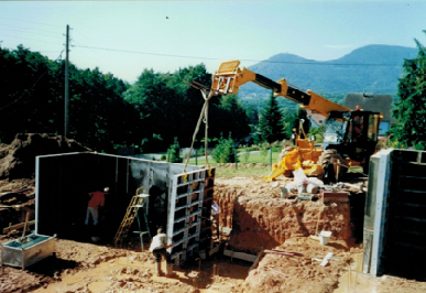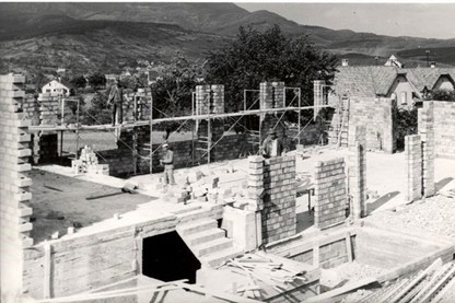 À l’époque de Jean-Paul on peut dire que la construction de la salle des fêtes de Neuve-Église reste un souvenir marquant. Réalisé avec peu de moyens techniques – sans grue, ni engins modernes – ce chantier a été un véritable défi relevé par une équipe de seulement trois maçons, ponctuellement épaulés par deux manœuvres.